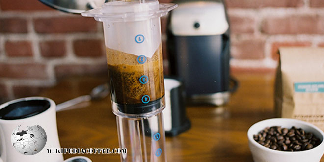 پس از اتمام سی ثانیه بهوسیله قاشق و یا همزن همراه دستگاه بهآرامی محتویات را هم بزنید تا محلول یکنواختی حاصل شود. سپس باقیمانده آب را بهآرامی و بهطور یکنواخت اضافه کنید. زمانی که تایمر یک دقیقه و سی ثانیه را نشان داد کلاهک و فیلتر را روی دستگاه قرار داده و بچرخانید. همزمان دستگاه را وارونه کرده و روی فنجان یا ظرف مربوطه بگذارید و پیستون را بهآرامی به سمت پایین فشار دهید تا کاملاً قهوه عصارهگیری شده داخل فنجان بریزد.